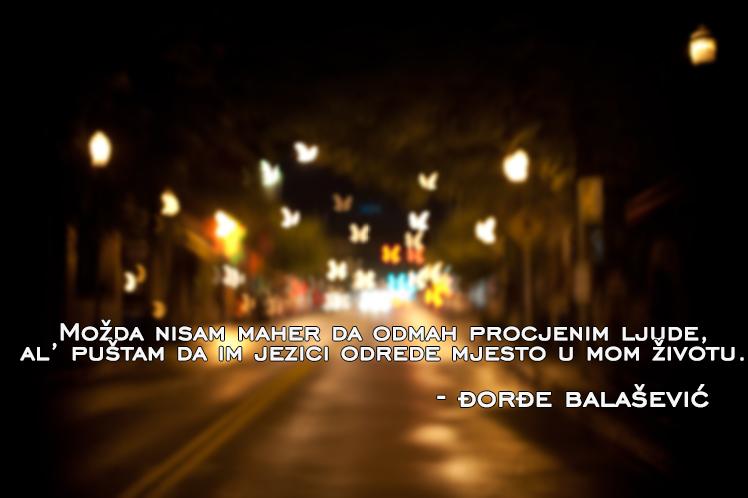 Ma, uzalud… Uz život se ne prilaže uputstvo za upotrebu i ... from citiram.net Čudni su magneti u nama. Važno je imati one prave. Njegova muzička karijera je počela 1977. Ličnost čiji su citati danas jedni od omiljenih svakako je đorđe balašević. U današnje vreme, kada je strah od korona virusa na domaćoj sceni dostigao vrhunac, đorđe balašević je pred smrt čudnom porukom zbunio je svoju porodicu, ali i zabrinuo brojne obožavaoce. Đorđe balašević, pevač, pesnik, pisac, glumac i reditelj rođen je u novom sadu 11. Neprijatelji te nikad ne zaboravljaju.. Godine kada je sa drugovima iz gimnazije osnovao grupu žetva i snimio za rtv ljubljana pesmu u razdeljak te ljubim.